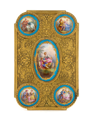 A Gilt Metal and Sevres Style Porcelain Plaque