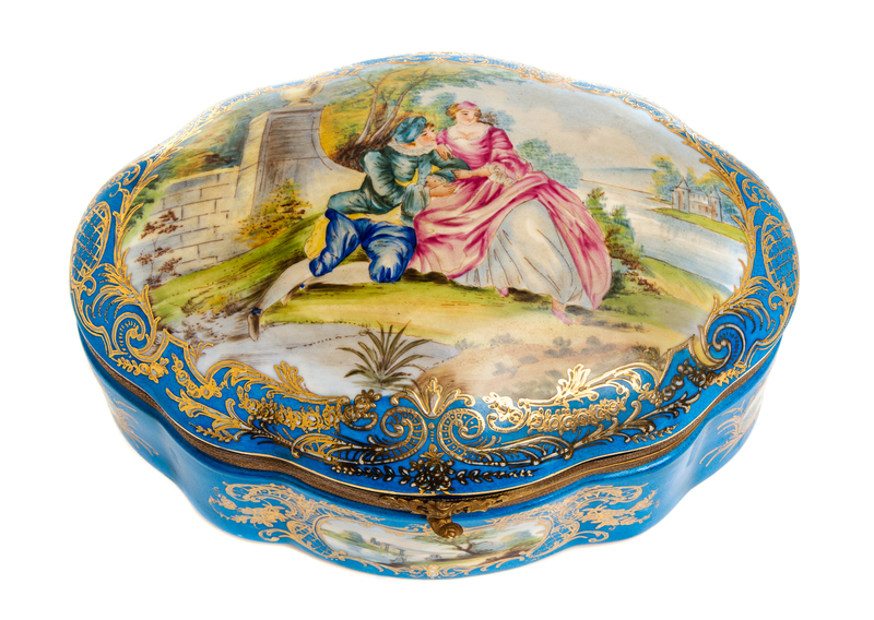 A Sevres Style Gilt Metal Mounted Porcelain Table Casket