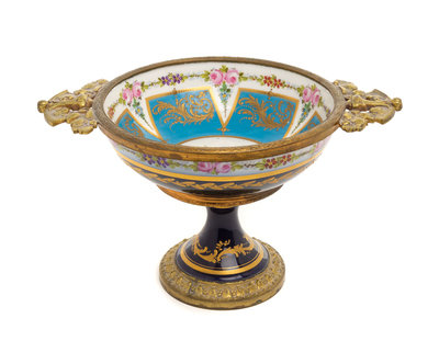 A Sevres Style Gilt Metal Mounted Porcelain Bowl