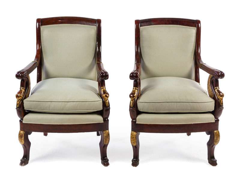 A Pair of Louis Philippe Style Parcel Gilt Mahogany Fauteuils