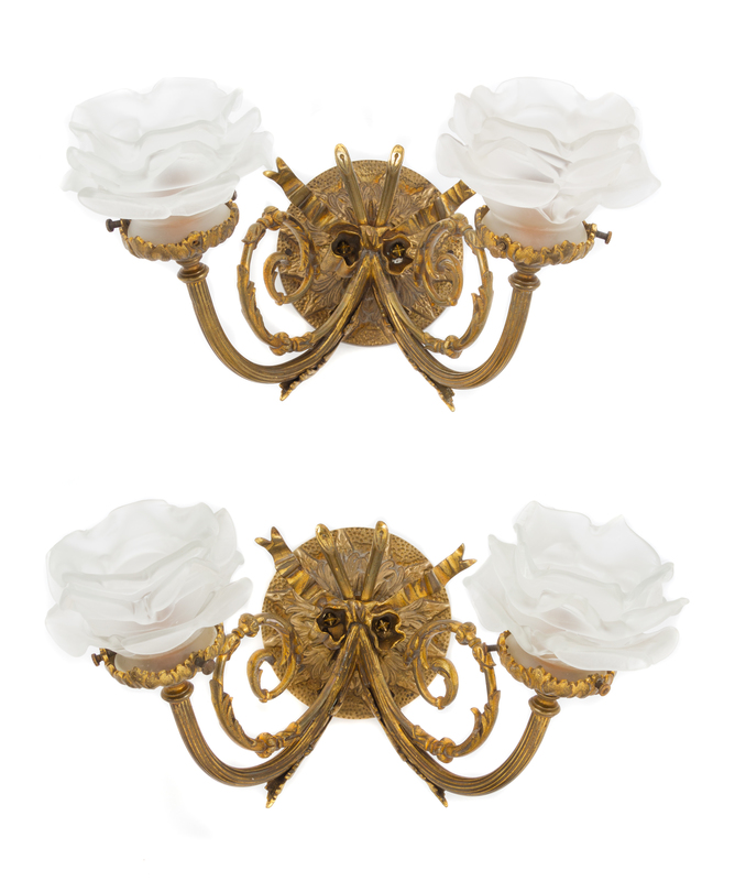 A Pair of French Gilt Bronze Two-Light Sconces