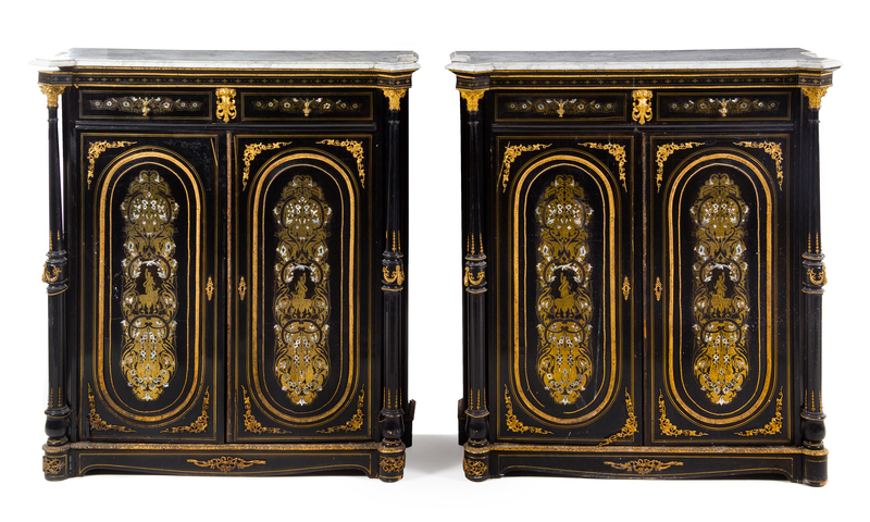 A Pair of Napoleon III Gilt Bronze Mounted Ebonized Meubles d'Appui
