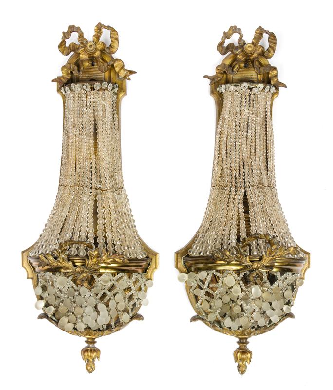A Pair of French Glass Beaded Gilt Metal Sconces