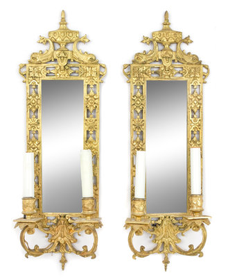 A Pair of Neoclassical Gilt Metal Two-Light Girandole Mirrors
