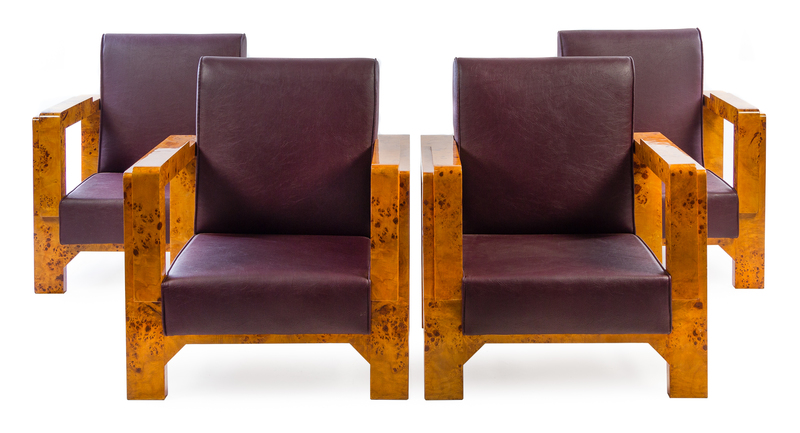 A Set of Four Art Deco Style Burlwood Club Chairs