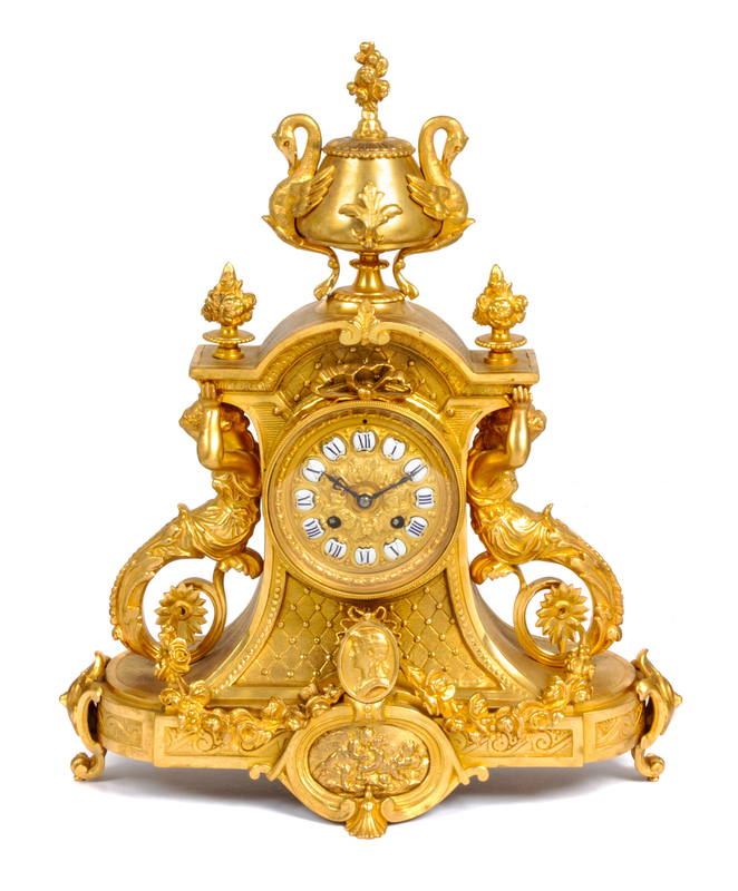 A Napoleon III Style Gilt Bronze Clock Garniture