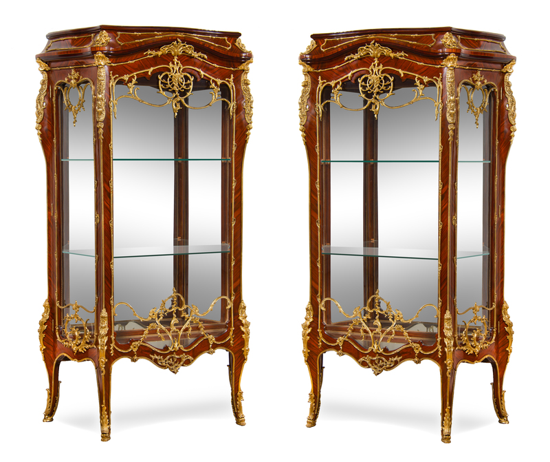 A Pair of Louis XV Style Gilt Bronze Mounted Vitrines