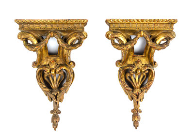 A Pair of Italian Giltwood Wall Brackets