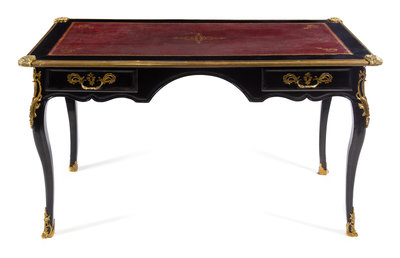 A Louis XV Style Gilt Bronze Mounted Lacquered Bureau Plat