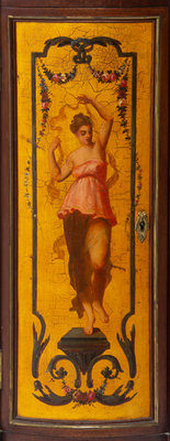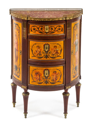 An Italian Painted Mahogany and Burlwood Demilune Commode