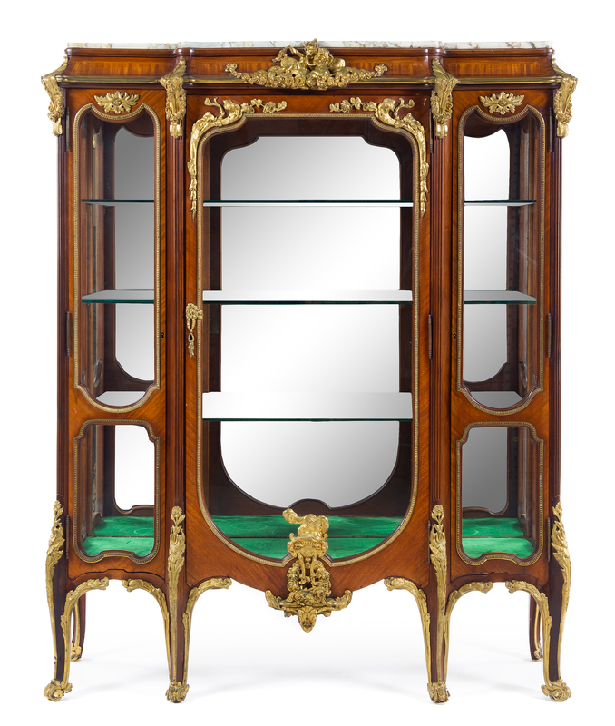 A Louis XV Style Gilt Metal Mounted Kingwood Vitrine