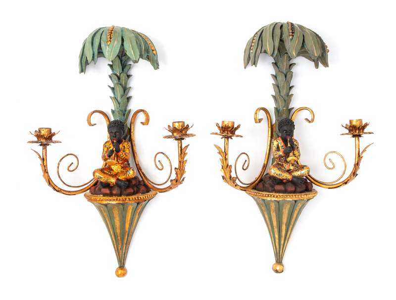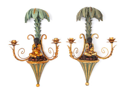 A Pair of Venetian Style Composition Figural Sconces