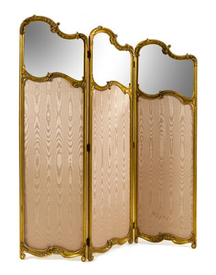 A Louis XV Style Giltwood Three-Panel Floor Screen
