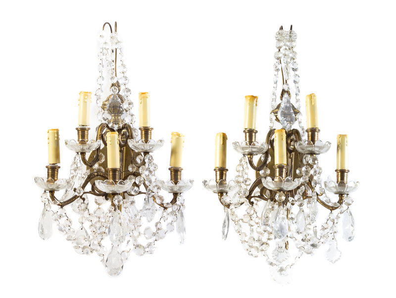 A Pair of Neoclassical Gilt Metal Five-Light Sconces