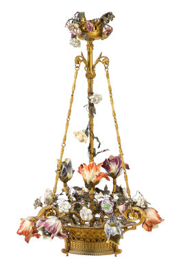 A Gilt Bronze and Porcelain Chandelier
