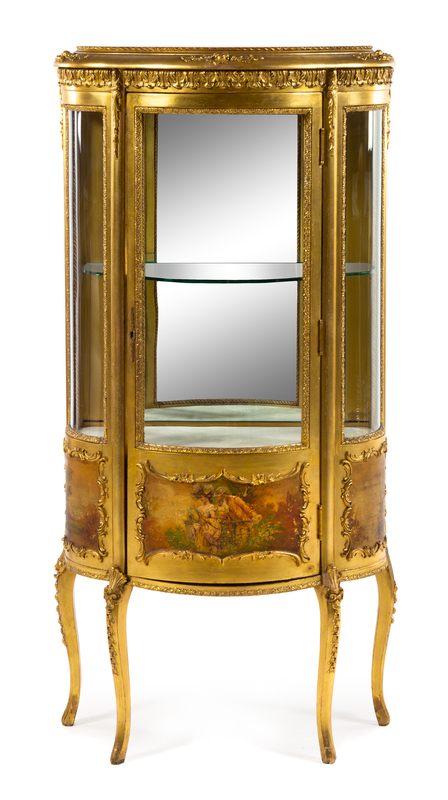 A Louis XV Style Giltwood and Vernis Martin Vitrine Cabinet