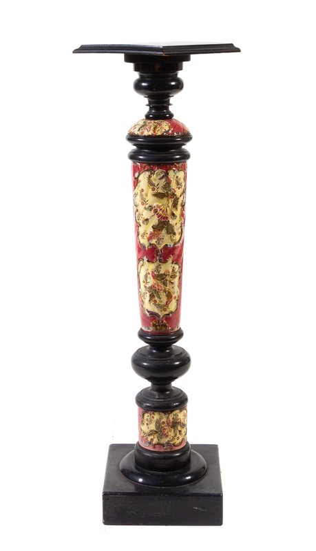 A Continental Ebonized Wood and Ceramic Inset Pedestal