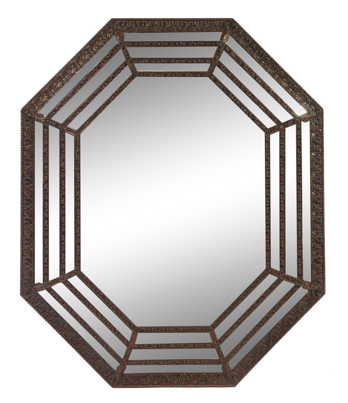 A Dutch Baroque Style Pressed Brass Mirror