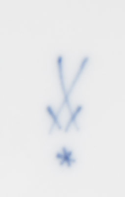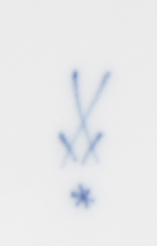 Blue Onion pattern, with starred crossed swords mark in underglaze blue to the underside.