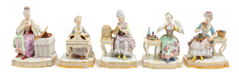 A Set of Five Meissen Porcelain Figures Emblematic of the Senses