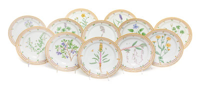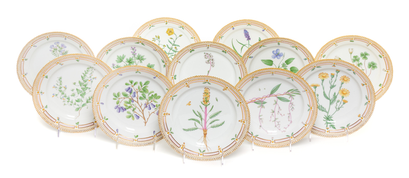 Twelve Royal Copenhagen Flora Danica Luncheon Plates