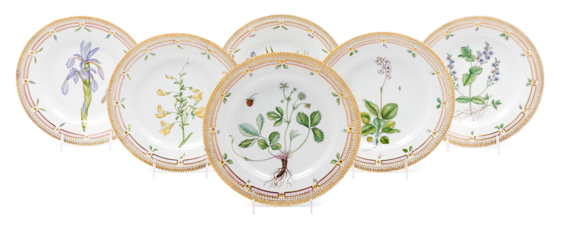 A Set of Twelve Royal Copenhagen Flora Danica Dinner Plates