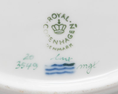 model number 3549, each painted to show highly realistic botanical specimens, with a blue waves mark and transfer-printed factory marks to the undersides.