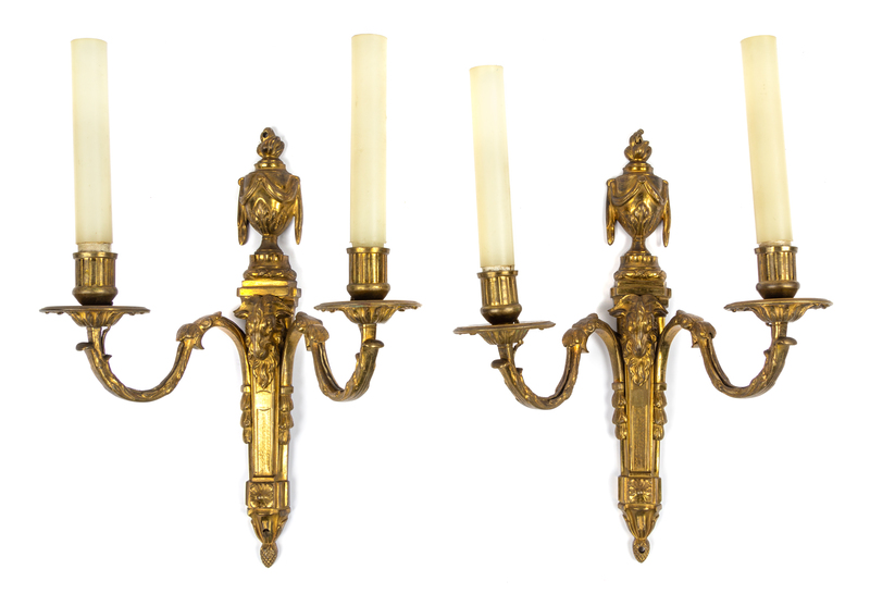 A Pair of Louis XVI Style Gilt Bronze Two-Light Sconces