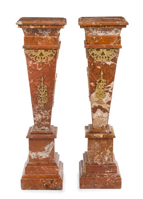 A Pair of Gilt Metal Mounted Marble Pedestals