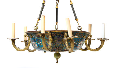 A Gilt Metal and Cloisonne Six-Light Chandelier