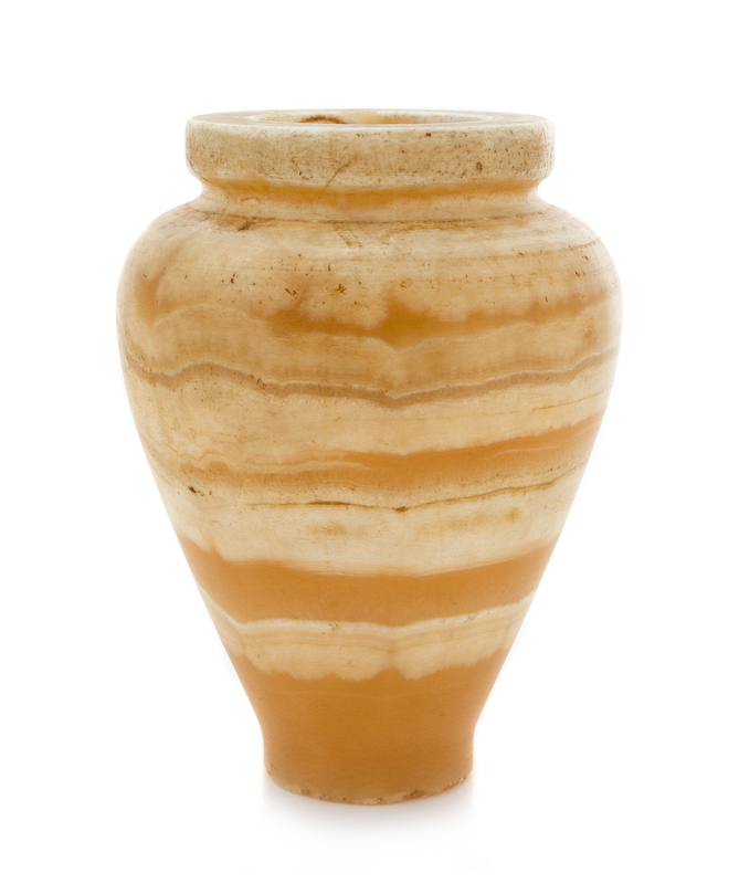 An Egyptian Banded Alabaster Vase or Canopic Jar