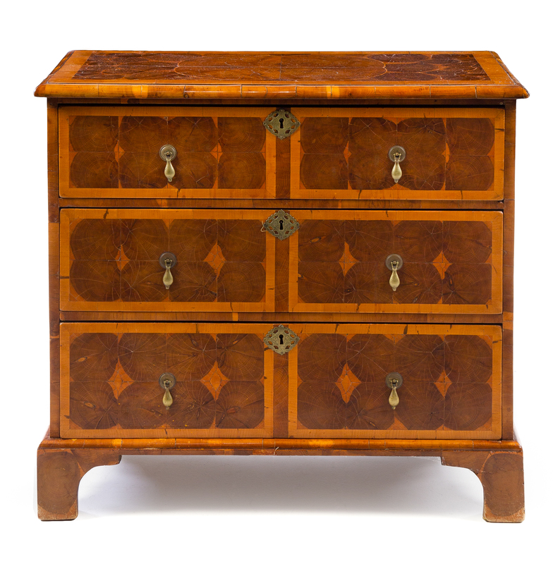 having a rectangular top above three graduated long drawers, raised on bracket feet.