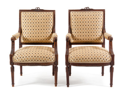 A Pair of Louis XVI Style Walnut Fauteuils
