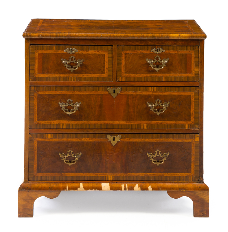having a rectangular top above two short drawers and two graduated long drawers, raised on bracket feet.