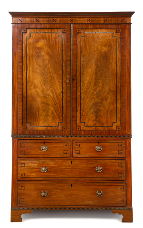 An English Inlaid Mahogany Linen Press