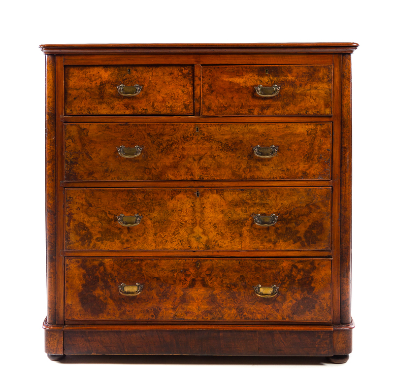 A Victorian Burlwood and Mahogany Chest of Drawers