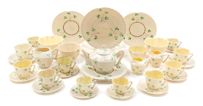 An Assembled Belleek Shamrock Shell Tea Service