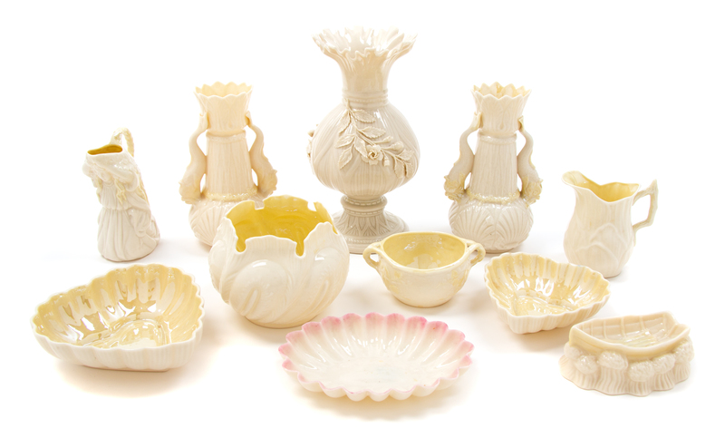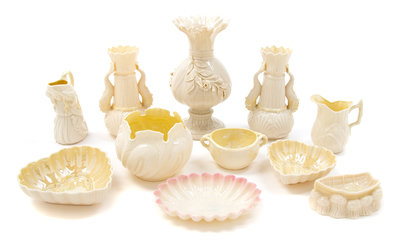 comprising four vases, two creamers, a sugar, a boat form salt and three shaped bowls.