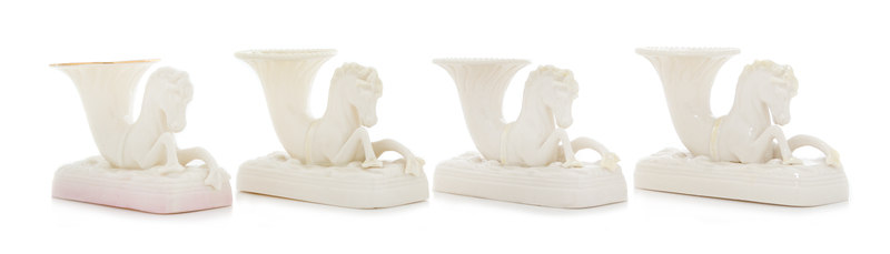 Four Belleek Seahorse Vases