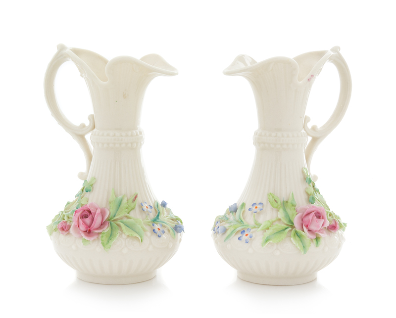A Pair of Belleek Aberdeen Rose Ewers