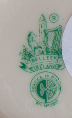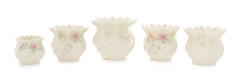 in three sizes, each of twisted shell form with applied flowers and shamrocks.