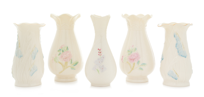 Five Belleek Vases