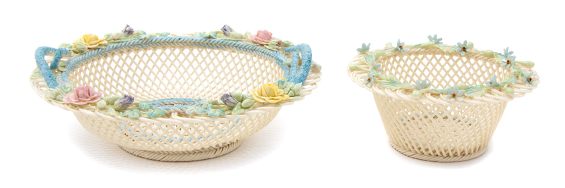 Two Belleek Four Strand Baskets