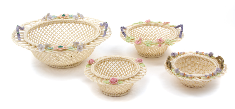 Four Belleek Three Strand Baskets