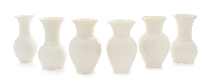 Six Belleek Vases