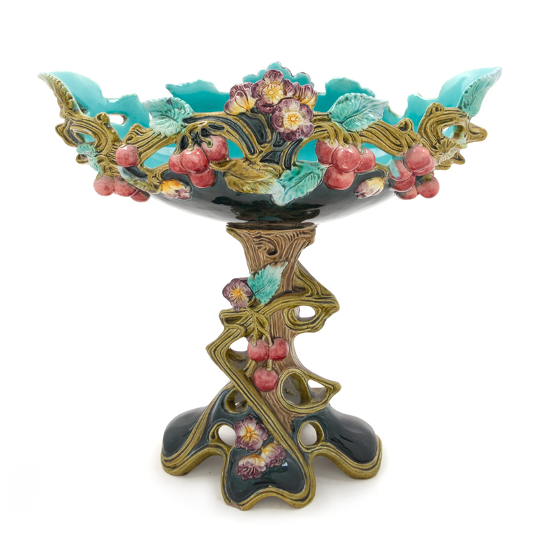 A Bohemian Art Nouveau Majolica Centerpiece Basket