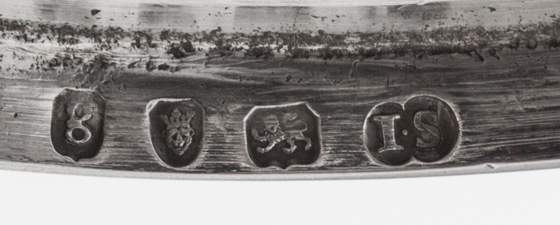 the fluted candle cup above the fluted tapering stem ending in a beaded circular base, the foot rim with an engraved script monogram.