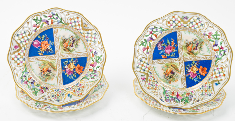 A Set of Seventeen Pierced Dresden Porcelain Plates