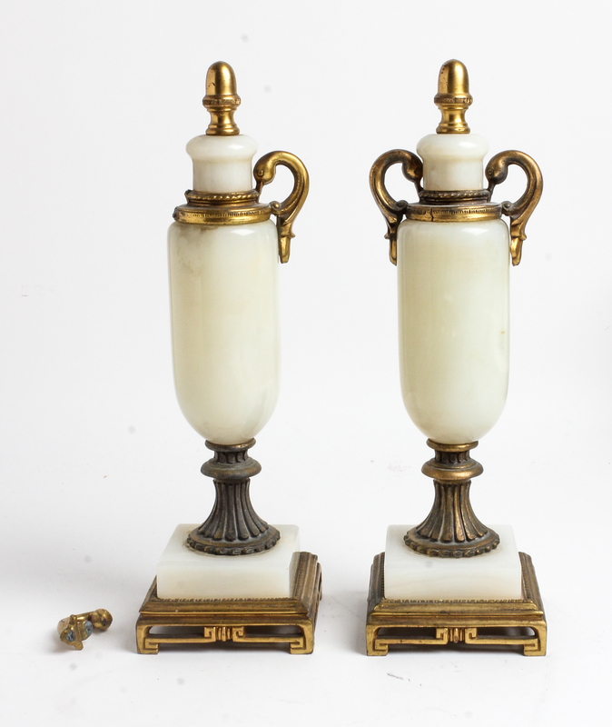 A Pair of Gilt Metal and Onyx Ornaments