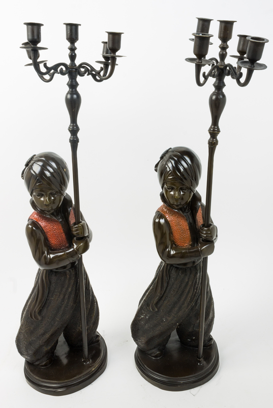 A Pair of Cast Metal Figural Candelabra